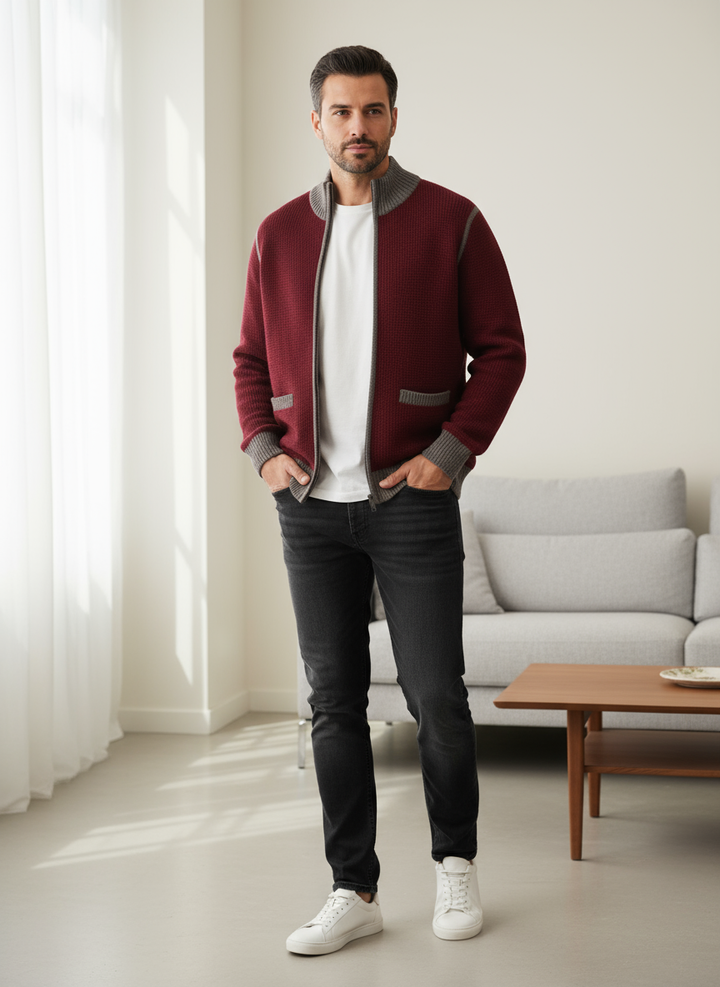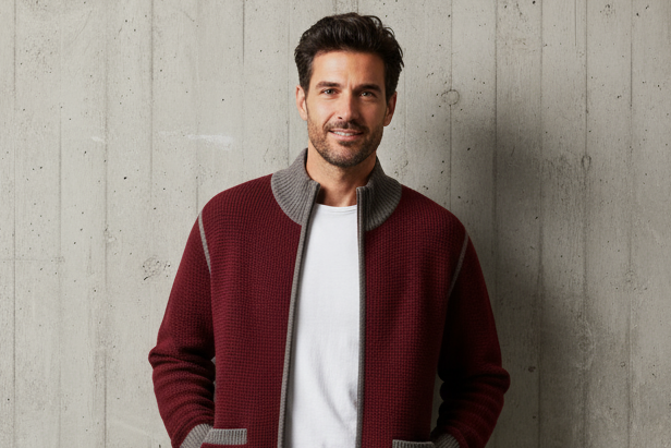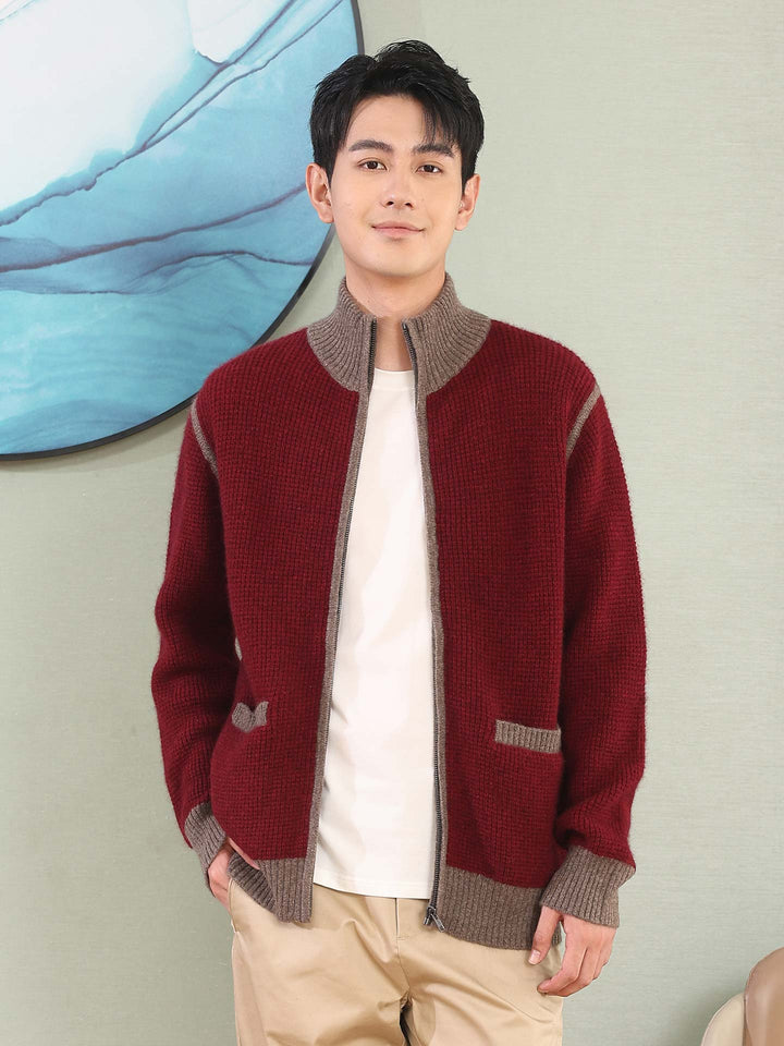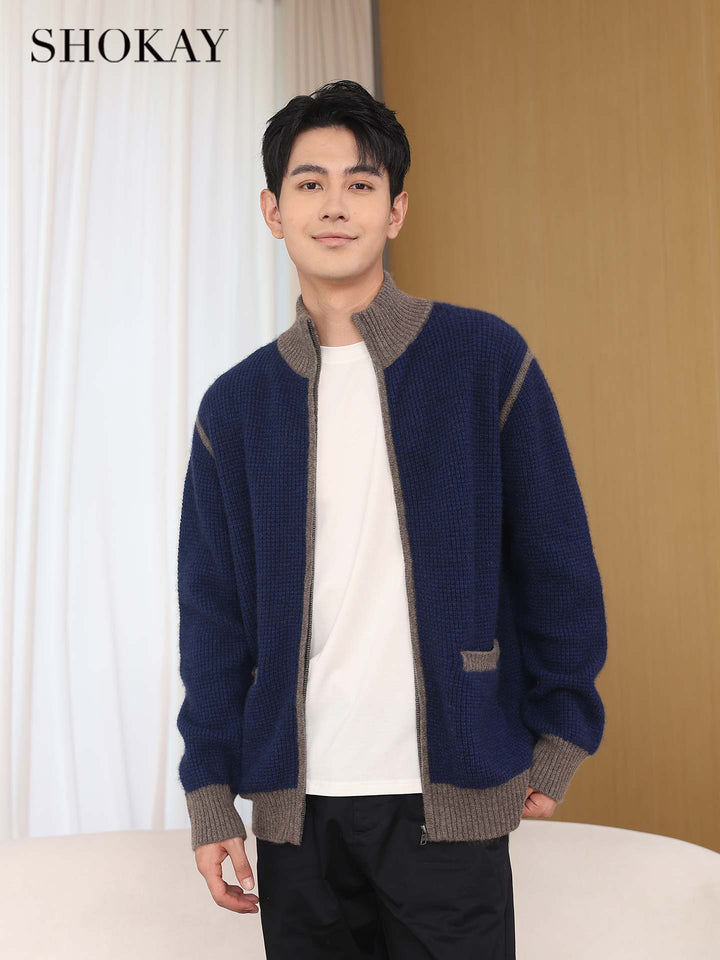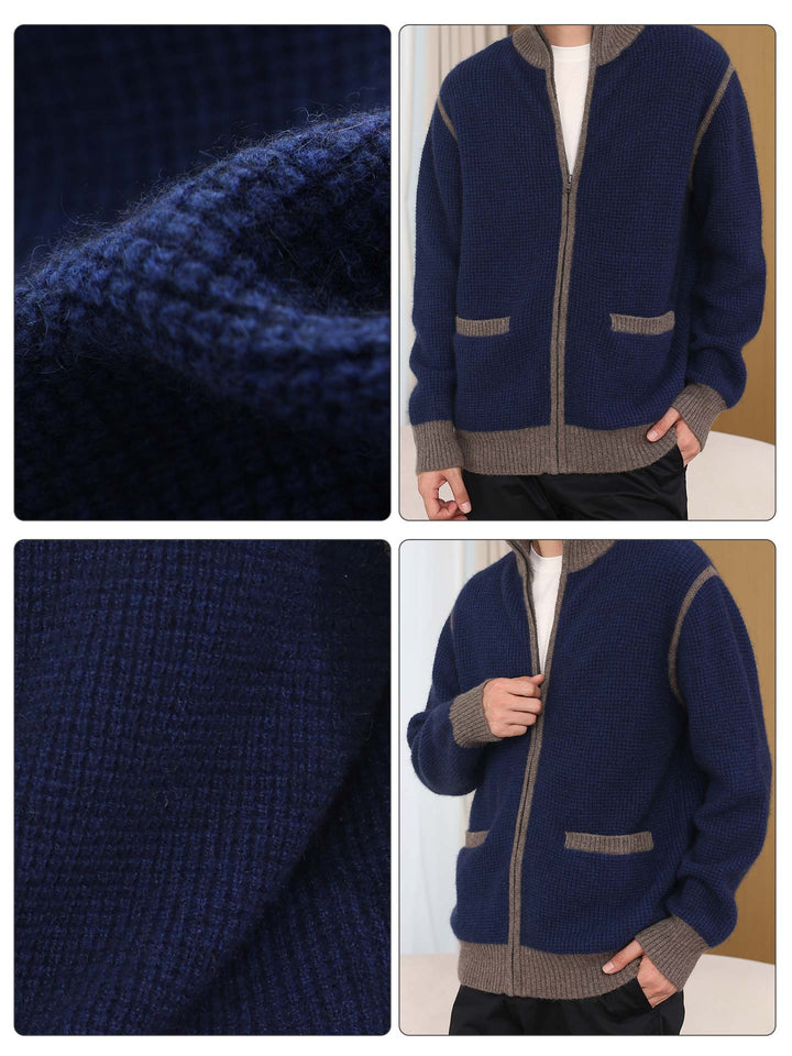 Shokay Men's Classic 100% Waffle Zip Cardigan